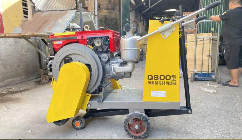 Bên cạnh đó, thùng chứa nước là chi tiết quan trọng giúp làm mát lưỡi cắt và hạn chế bụi trong quá trình cắt bê tông. Hệ thống 2 bánh trước và 2 bánh sau giúp khung di chuyển chắc chắn, giữ thăng bằng tốt khi làm việc trên bề mặt công trình. Những đặc điểm này giúp thiết bị phù hợp với nhiều hạng mục từ sửa chữa đường, thi công hạ tầng đến xây dựng dân dụng.
